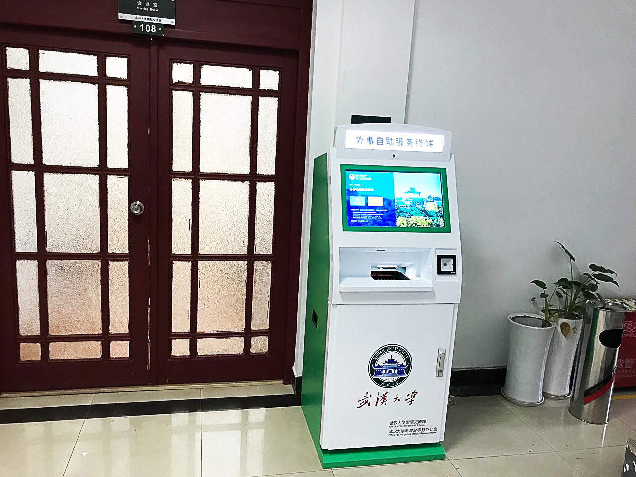 2018年11月28日,武汉大学因公出国(境)综合服务管理系统上线后得到了全校师生的一致好评。后续为方便教职工办理因公临时出国(境)业务手续,我司再接再厉,与校方合作推出自助服务打印终端,教职工可在各终端打印批件及人员申请表用于财务报销或请款。现5台终端已在学校医学部8号楼1楼大厅、文理学部国际交流部1楼和综合事务服务中心(当代楼)1楼以及信息学部国际交流服务中心1楼率先投入使用,后期2台自助服务打印终端于今年7月底完成在口腔及人民医院安装及调试工作。