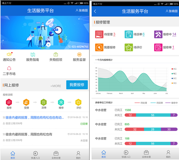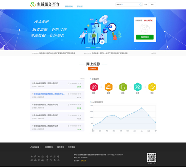提供报修、受理、派单、维修、评价全过程的管理服务平台;